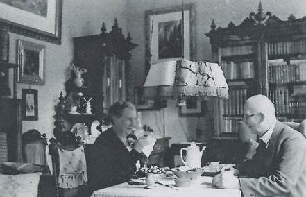 Das gemütliche Wohnzimmer von Tante Sophie und Onkel Bernhard mit dem Papagei war direkt rechts neben der Haustür, dort, wo heute das Biedermeierzimmer ist und gegenüber lagen Onkel Bernhards Praxisräume. Mit Tante Sophie verband mich eine ganz besondere Freundschaft. Sie begann eigentlich mit Briefmarken! Tante Sophies beste Freundin war Jenny Brinkhaus, sie war ihre Nichte und ihre Schwägerin, eine vielreisende Weltbürgerin! Von ihr bekam Sophie Ansichtskarten-Grüße aus aller Herren Länder. Diese Karten schenkte sie mir dann und ich riss die Briefmarken für meine Sammlung heraus - schade eigentlich, die Ansichtskarten wären heute viel spannender.