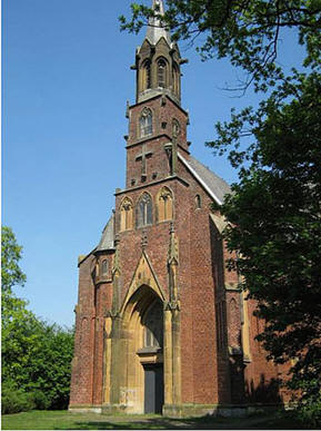 Affhüppen-Kapelle im neugotischen Stil aus handgeformten, roten