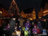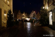 vorweihnachtlich geschmückte Marktplatz mit seinem Weihnachtswäldchen lädt