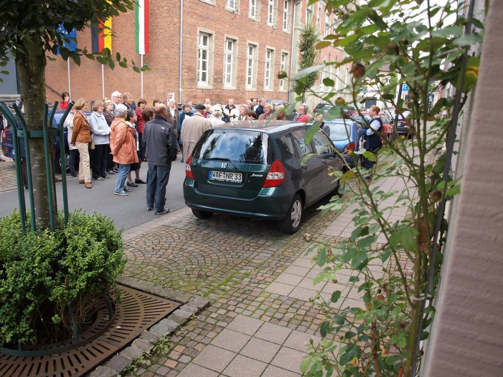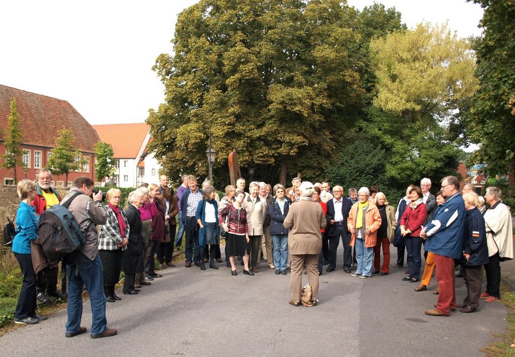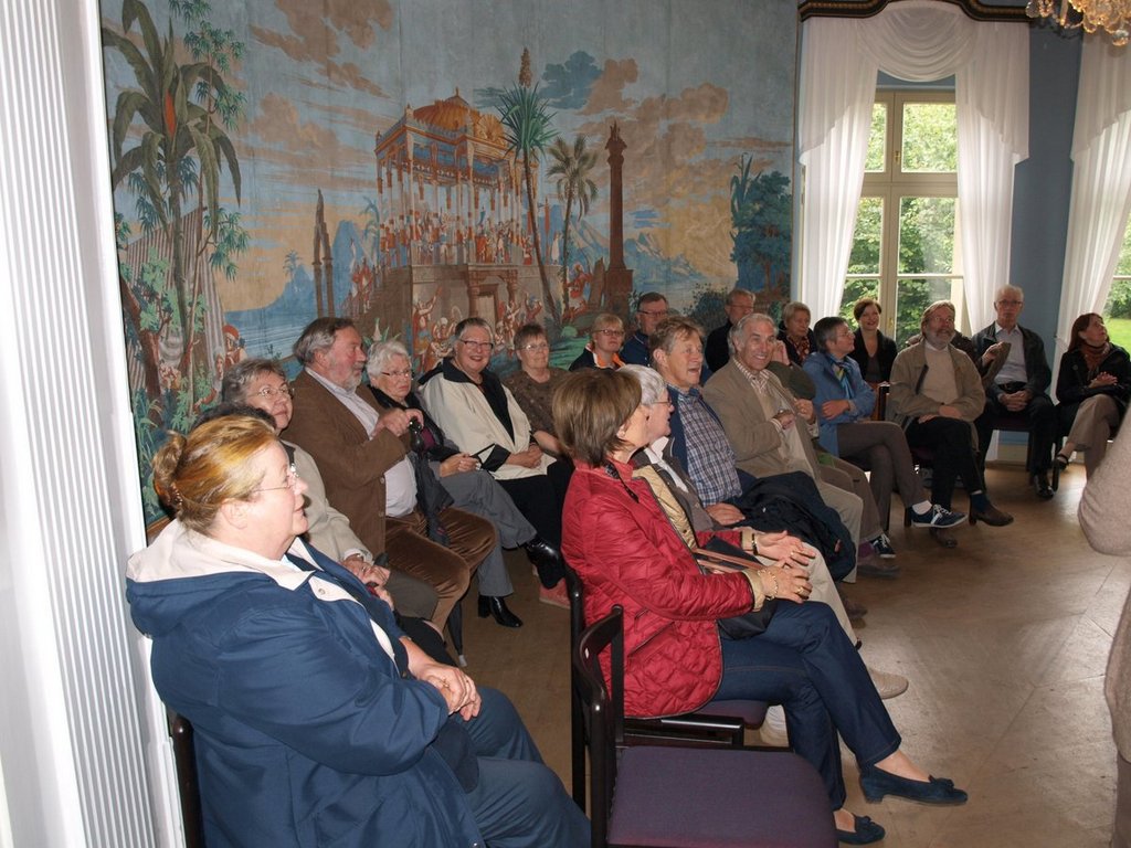 Weit mehr als 50 Interessierte folgten der Einladung des Heimatvereins zu einem Stadtrundgang auf den Spuren der Textilindustrie. Warum begann Mechtild Wolff ihrem Rückblick auf die textile Vergangenheit der Hansestadt Warendorf im Tapetensaal des hochherrschaftlichen Hauses des Hofrates Dr. Katzenberger? Seine Enkelin war es, die Hermann Josef Brinkhaus heiratete, der dann mit seiner großen Familie in diesem Hause lebte und hier die ersten Schritte zum Textilfabrikanten machte.
