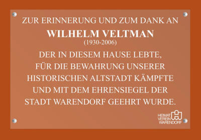 Die damals ziemlich entvölkerte Innenstadt wurde wieder ein beliebter Wohnstandort. Wilhelm Veltman und seine Mitstreiter haben den Warendorfer Bürgern und mittlerweile auch einer Vielzahl von Touristen die historische Altstadt wieder bewusst gemacht und wir wissen heute, wie schön es ist, hier zu wohnen, zu flanieren, einzukaufen und in den vielen Straßencafés die Atmosphäre der Altstadt zu genießen.